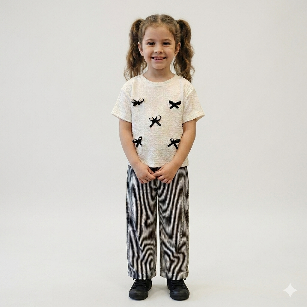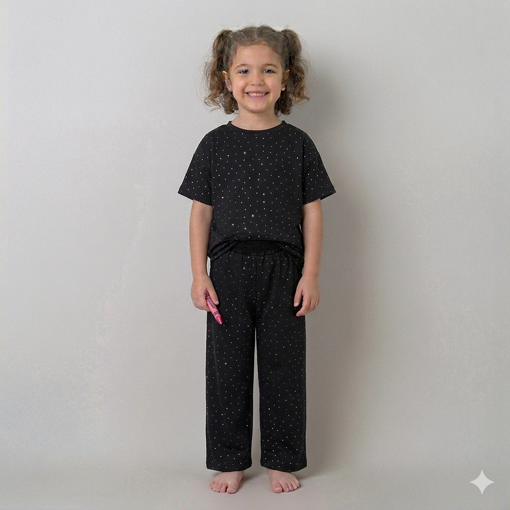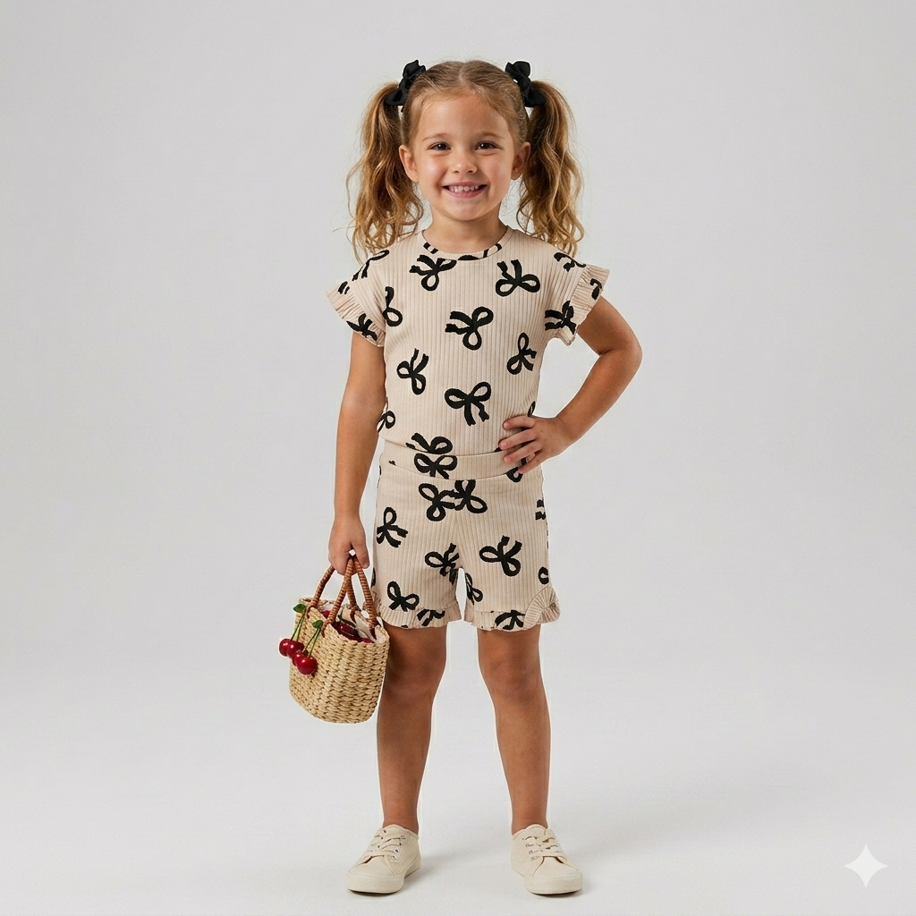 Baloncuk Kumaş Kısa Kollu Pantolonlu Takım