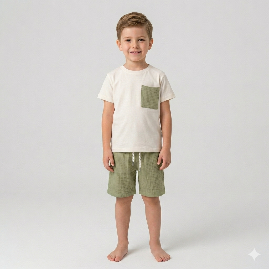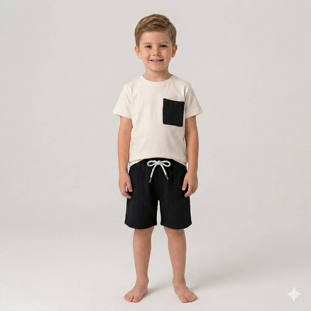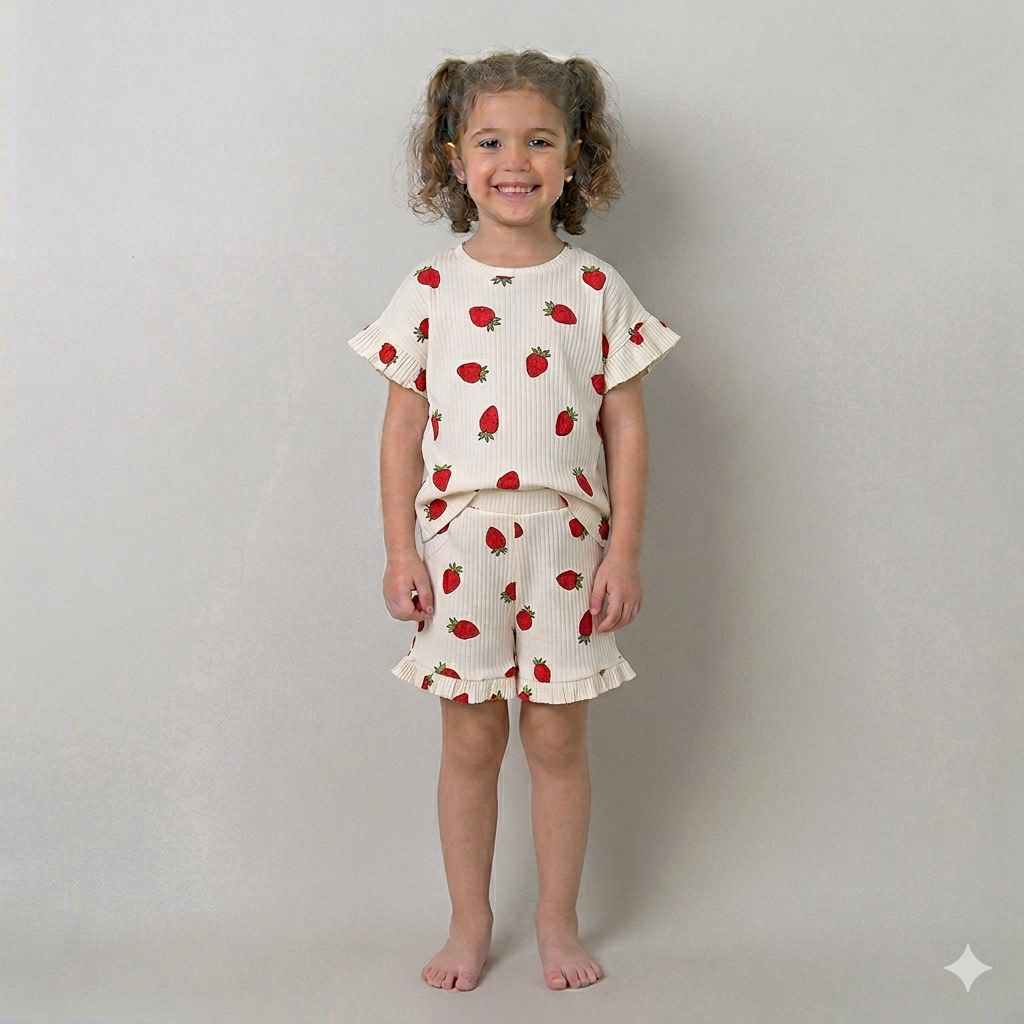 Baloncuk Kumaş Kısa Kollu Pantolonlu Takım